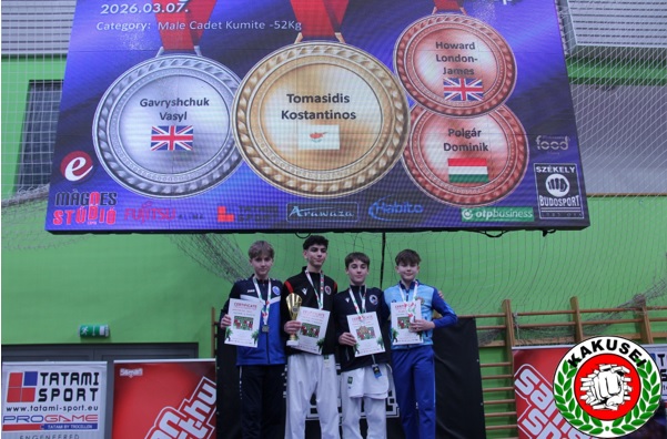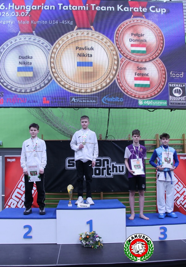 Polgár Dominik: kumite 14-15 év +52 kg 3. helyezés és 12-13 év -45 kg 3.helyezés
