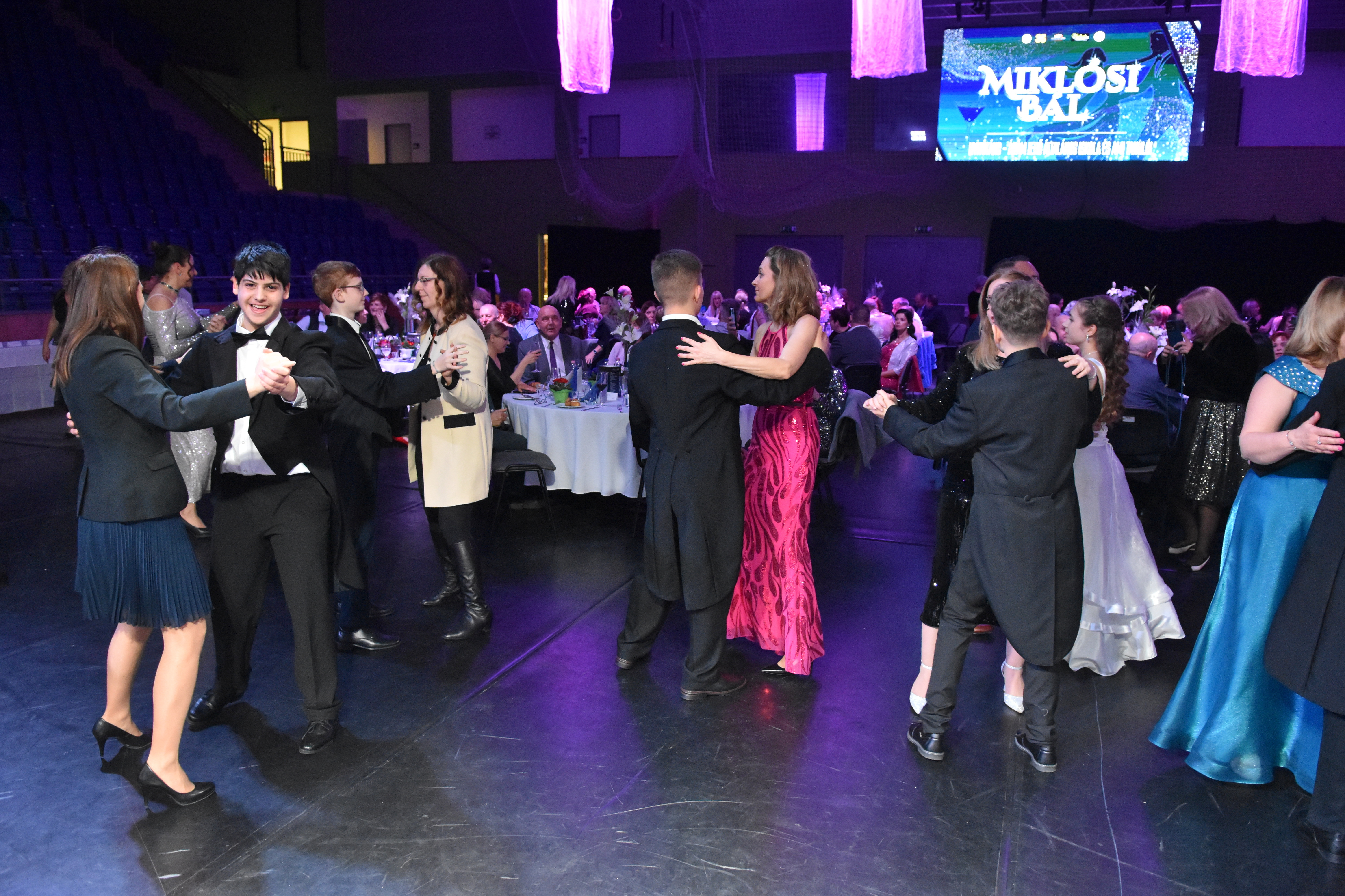 A február 14-én megtartott Miklósi Bál résztvevőit Nagy János polgármester köszöntötte, majd az Ádám Jenő Általános Iskola 8.c osztályának és az Alapfokú Művészeti Iskola növendékeinek közös nyitótánca következett. A látványos elemekkel tarkított keringő után a fellépők a vendégeket is megtáncoltatták, a báli zenéről ezúttal is a Budapest Showtime gondoskodott.